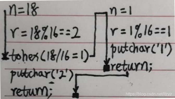 递归都可以转化为循环语句,下面是用循环语句完成的十进制转十六进制示例: