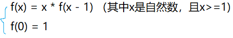 下面是它的函数表述,显然f(x)就调用了自己f(x-1),此为递归。