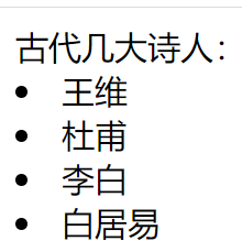 document.write("古代几大诗人:<br>");