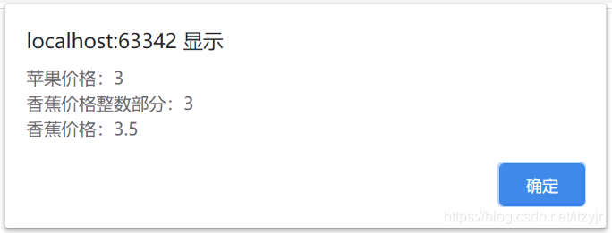 alert("苹果价格:" + priceOfApple