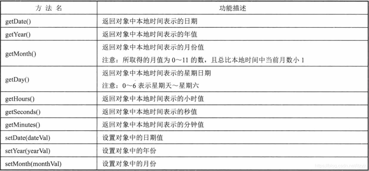 Date对象的常用方法: