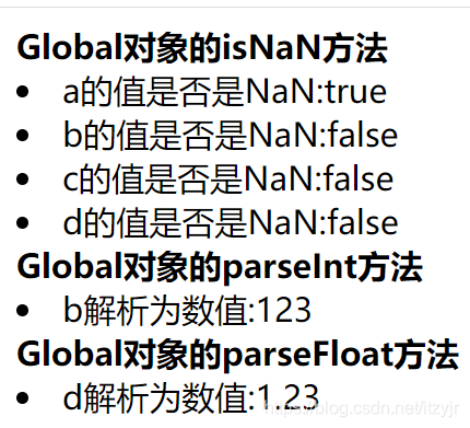 document.write("<li>b的值是否是NaN:" + tb + "<br>");