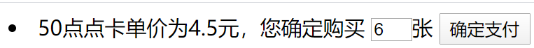 <input id="button1" type="button" value="确定支付" onclick="return button1_onclick()">(不能超过5张)