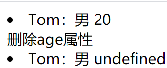 document.write("<br>删除age属性<br><li>" + student["name"] + ":" + student["sex"] + " " + student["age"]);