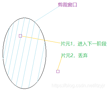 ②图元处理。它最重要的工作是剪裁,其任务是消除位于半空间(half-space)之外的部分几何图元,这个半空间是由一个剪裁平面所定义的。如,点剪裁就是简单地接受或者拒绝顶点,线段或多边形剪裁可能需要增加额外的顶点,具体取决于直线或多边形与剪裁平面之间的位置关系。如下图所示。