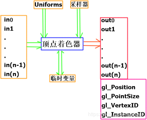 输入:待处理顶点相应的in变量、unifrom变量、采样器、临时变量。