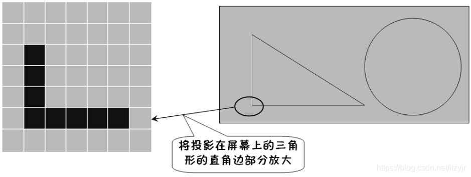 虚拟3D世界当中物体的几何信息一般采用连续的数学量来表示,但显示设备屏幕是离散化的(由一个个像素组成),因此还需要将投影结果离散化。将其分解为一个一个离散化的小单元,这些小单元称为——片元。