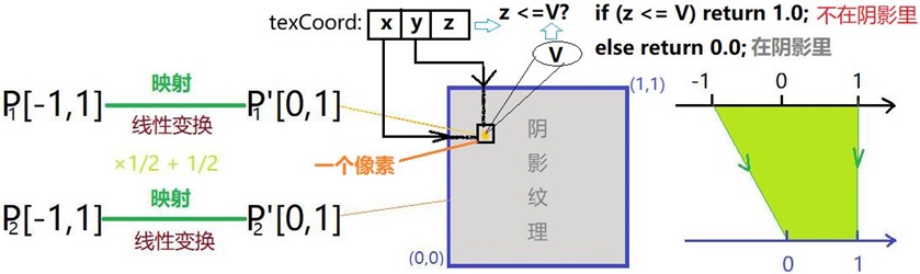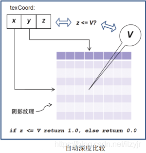 渲染的像素和阴影纹理中的值的深度比较