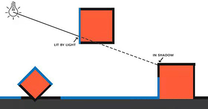 阴影贴图基于一个非常简明的想法: 光线无法看到的任何东西都在阴影中。也就是说,如果对象#1 阻挡光到达对象#2,等同于光不能“看到”对象#2。