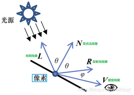 我们在Blog“✠OpenGL-7-光照”有上图,并且GLSL代码中求反射光用的是如下代码: