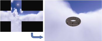 从图稿或照片构建纹理立方体贴图图像时,需要注意避免在立方体面交汇点处的“接缝”,并创建正确的透视图,才能让天空盒看起来逼真且无畸变。有许多工具可以辅助达成这一目标:Terragen、Autodesk 3Ds Max、Blender 和 Adobe Photoshop 都有用于构建或处理立方体贴图的工具。同时,还有许多网站提供各种现成的立方体地图。