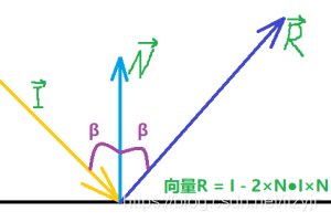 R = I - 2×cosα×N(α是向量I与法向量N的夹角,并非上图中的β)