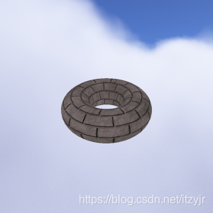在这个例子中,我们甚至会感到在环面的左下方似乎有一个镜面高光,因为立方体贴图中包括太阳在水中反射的倒影。