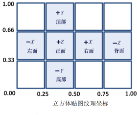 使用纹理立方体贴图为立方体添加纹理需要指定适当的纹理坐标。下图展示了纹理坐标的分布,这些坐标接着会分配给立方体的每个顶点。