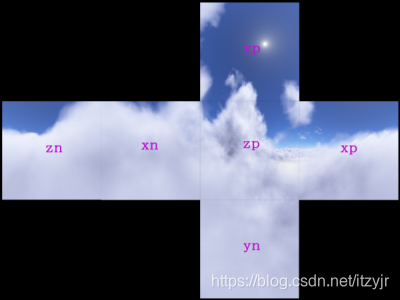 另一种常见(且高效)的方式则是使用一个包含 6 个面的纹理的图像。