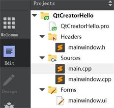 QtCreatorHello.pro文件是项目文件。这包含qmake构建应用程序所需的所有信息。该文件在项目创建期间自动生成,并以结构化方式包含相关详细信息。可以在此文件中指定文件、资源和目标平台。如果你对应用程序进行了任何修改,则需要再次运行qmake。.pro文件内容,如下图所示。让我们跳过修改此项目的内容。