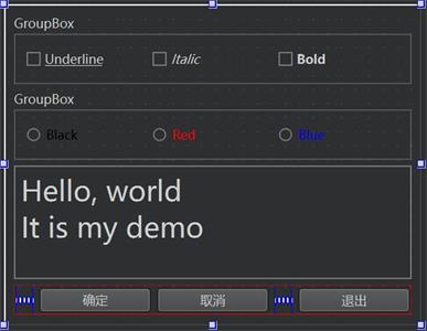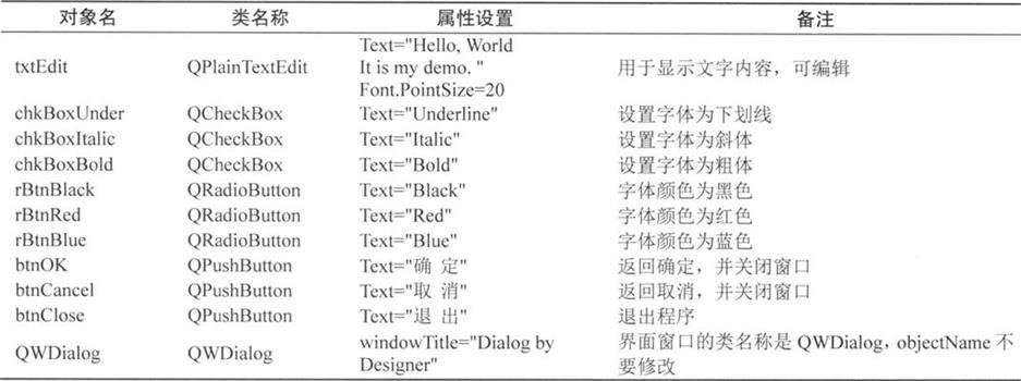 在界面上还有两个用代码创建的组件,用于设置字体大小的spinFontSize和用于设置字体的comboFont,这两个组件的信号与槽的功能实现显然不能通过可视化的方法来实现。