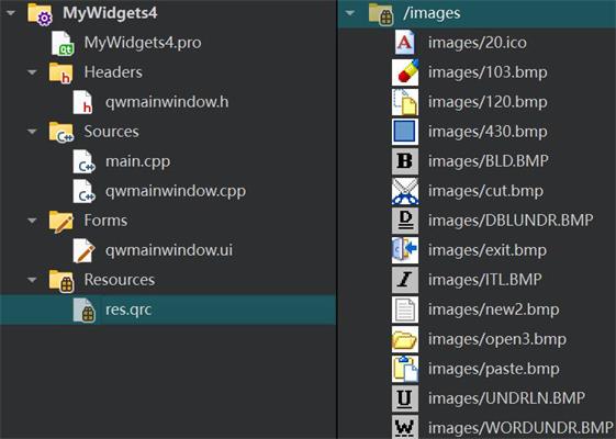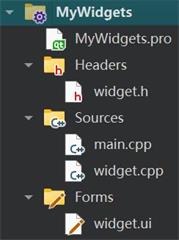 - 项目组织文件MyWidgets.pro,存储项目设置的文件。