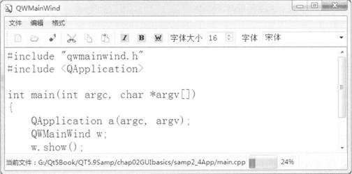 Widget类继承自QWidget,它是本实例设计的窗口的类名,定义此窗口后再用w.show()显示此窗口。