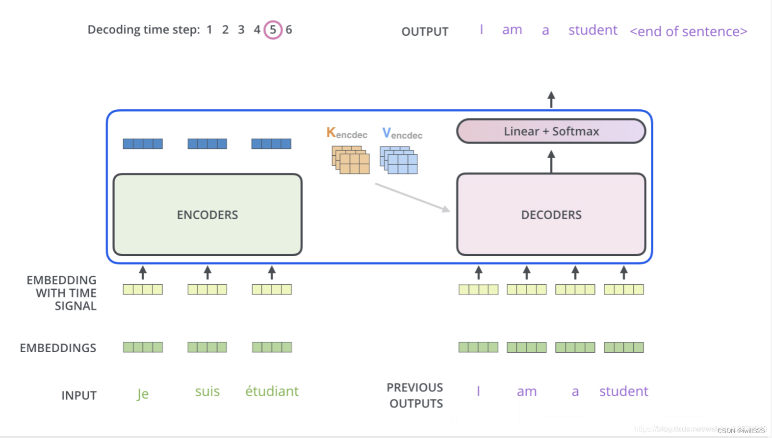 - Outputs : Outputs是上一次Decoder的输出。等于Word Embedding(Outputs) + Positional Embedding