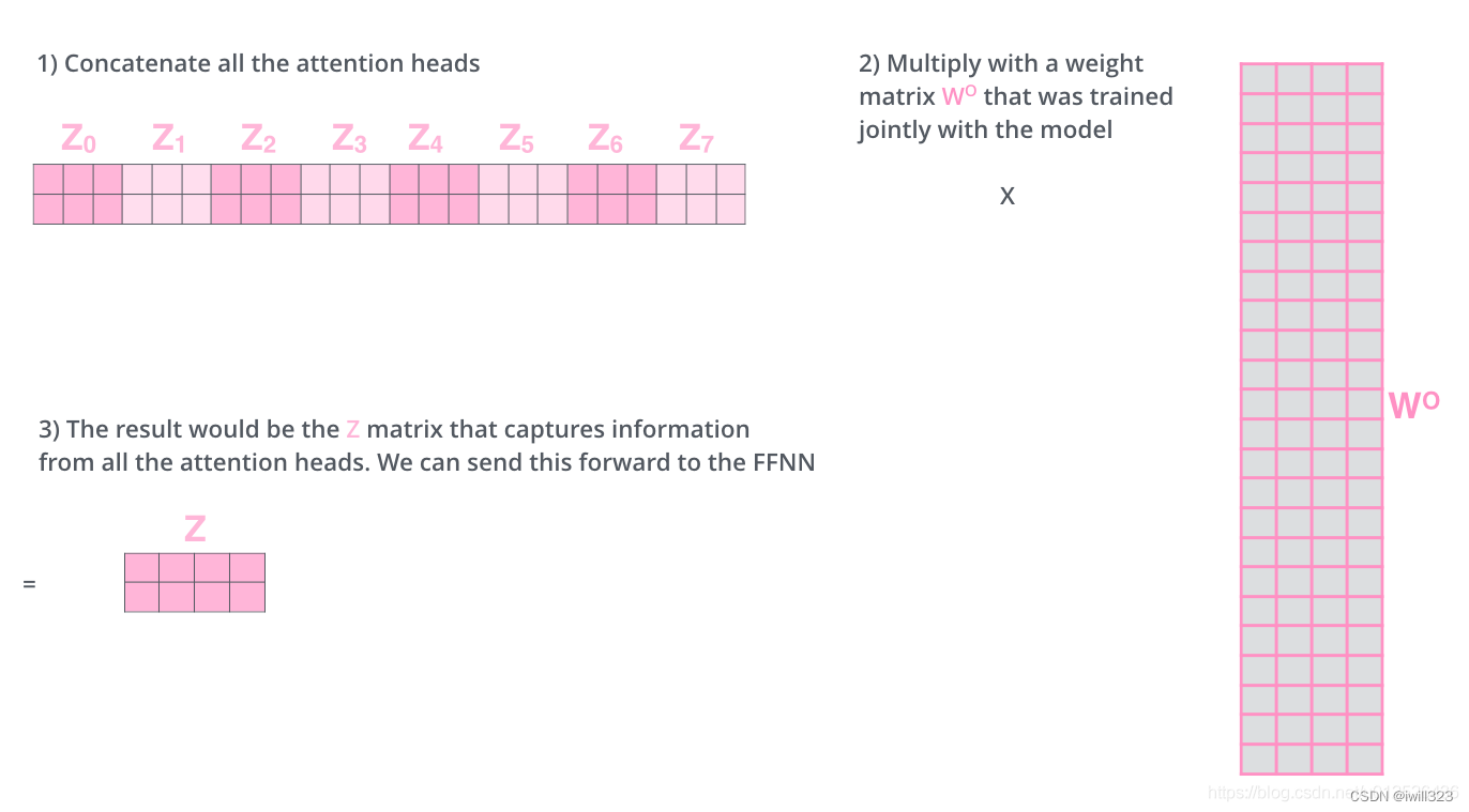 但是卷积的好处是,一个输出可以有多个通道,每个通道可以认为是识别不同的模式,作者也想得到这种多通道输出的效果,所以提出了Multi-Head Attention多头注意力机制,去模拟卷积多通道输出效果。