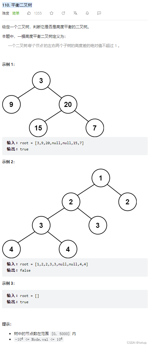 视频讲解:后序遍历求高度,高度判断是否平衡 | LeetCode:110.平衡二叉树_哔哩哔哩_bilibili