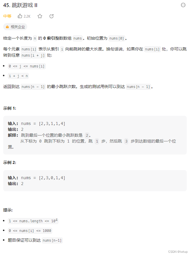 视频讲解:贪心算法,最少跳几步还得看覆盖范围 | LeetCode: 45.跳跃游戏II_哔哩哔哩_bilibili