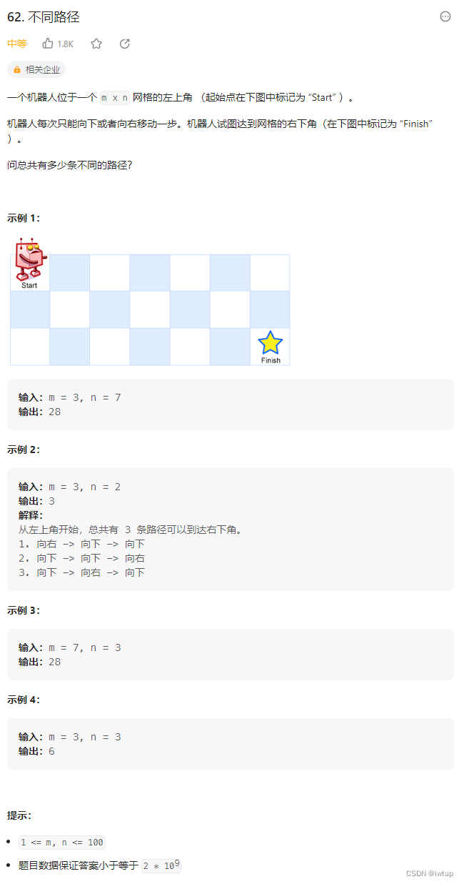力扣题目:LeetCode 62.不同路径