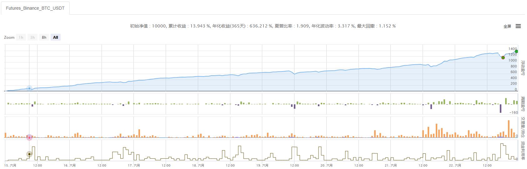 其次,网格策略不同于订单薄策略,前者很吃流动性规律,后者属于通用性很强的策略,说白了就是逆势加仓回调清仓,简单粗暴。