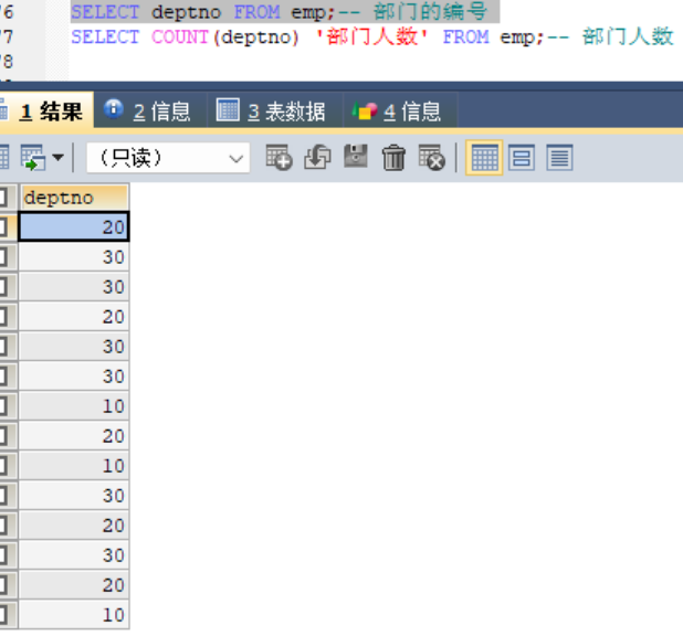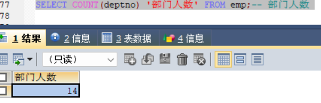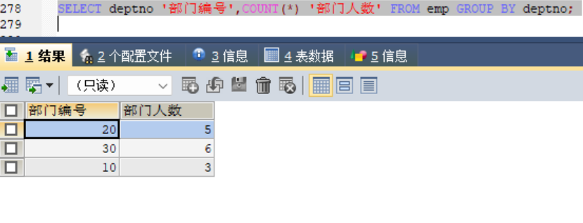 合在一块就是每个部门的人数,由于出现了聚合函数,所以同列名一定要写在group by 之后