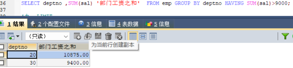 由于having是在分组之后进行筛选,所以至于要在原有的工资之和的基础上添加一句 HAVING 语句进行筛选即可