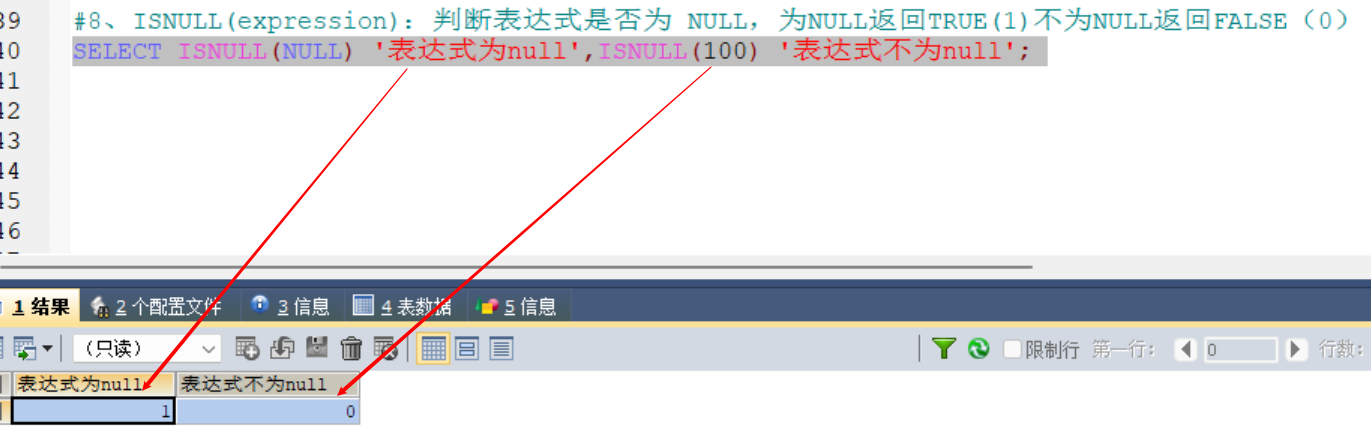 #8、ISNULL(expression):判断表达式是否为 NULL,为NULL返回TRUE(1)不为NULL返回FALSE(0)