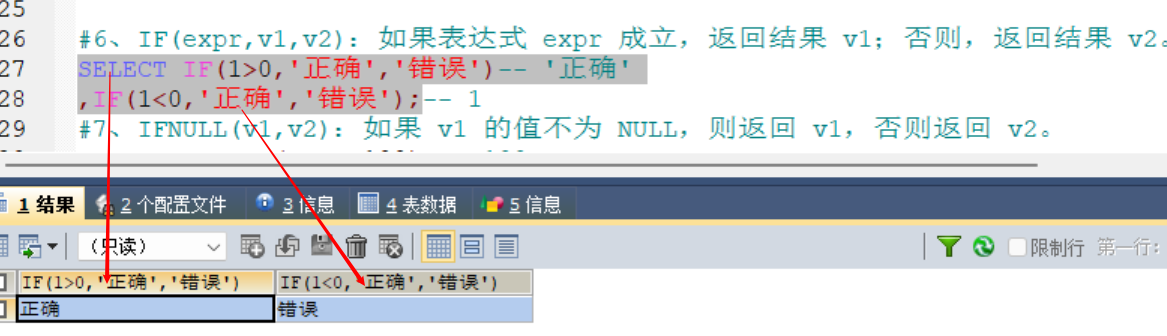 #6、IF(expr,v1,v2):如果表达式 expr 成立,返回结果 v1;否则,返回结果 v2。
