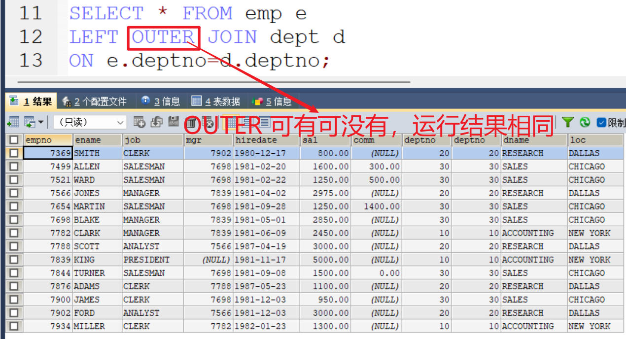 #外连接的特点:查询出的结果存在不满足条件的可能。