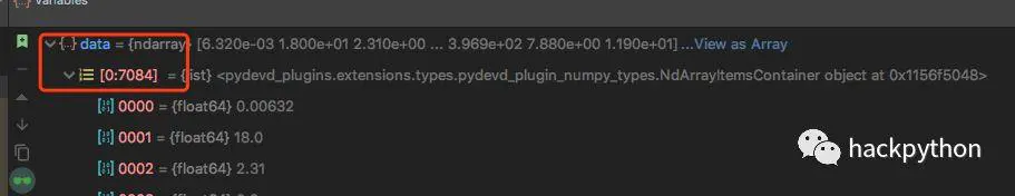 一开始,通过numpy的fromfile方法从文件中读取数据,该方法会读取文件中的数据并返回相应的数组,如图: