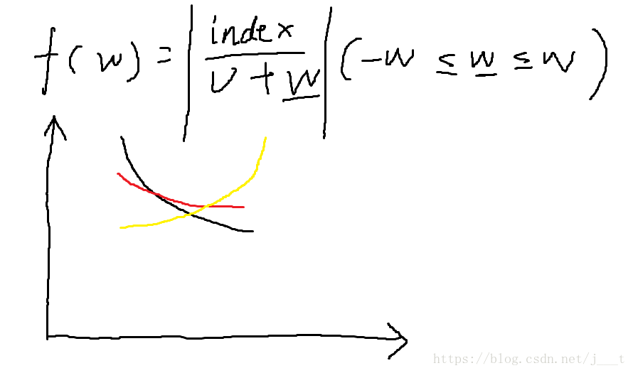 如上图所示,这个函数一定是单调的,如果要求得一个w使得两个f(w)相等,那么必然是这两个飞机的函数有交点。