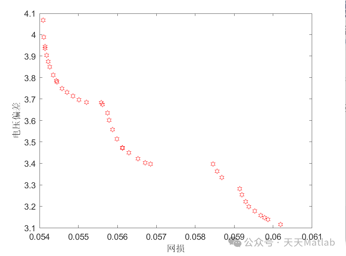 本文采用IEEE 33节点配电网作为算例,在该网络中接入多个DG。通过MATLAB软件编程实现MODE算法,并与单目标粒子群算法(PSO)进行对比分析。结果表明,MODE算法能够有效地找到一组Pareto最优解,该解集在电压偏差、网络损耗和DG出力约束之间取得了良好的平衡。与单目标PSO算法相比,MODE算法获得了更优的整体性能,体现了其在解决含DG配电网无功优化问题的优越性。具体结果将以图表形式展示,包括Pareto前沿图、目标函数值对比等。