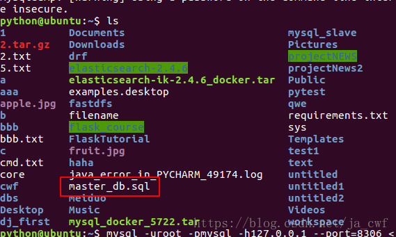 登入主服务器Ubuntu中的mysql,创建用于从服务器同步数据使用的帐号