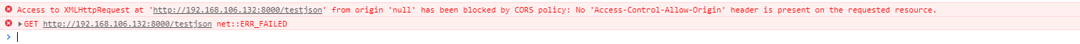 出现错误:Access to XMLHttpRequest at 'http://xxx.xxx.xxx.xxx:8000/testjson' from origin 'null' has been blocked by CORS policy: No 'Access-Control-Allow-Origin' header is present on the requested resource.