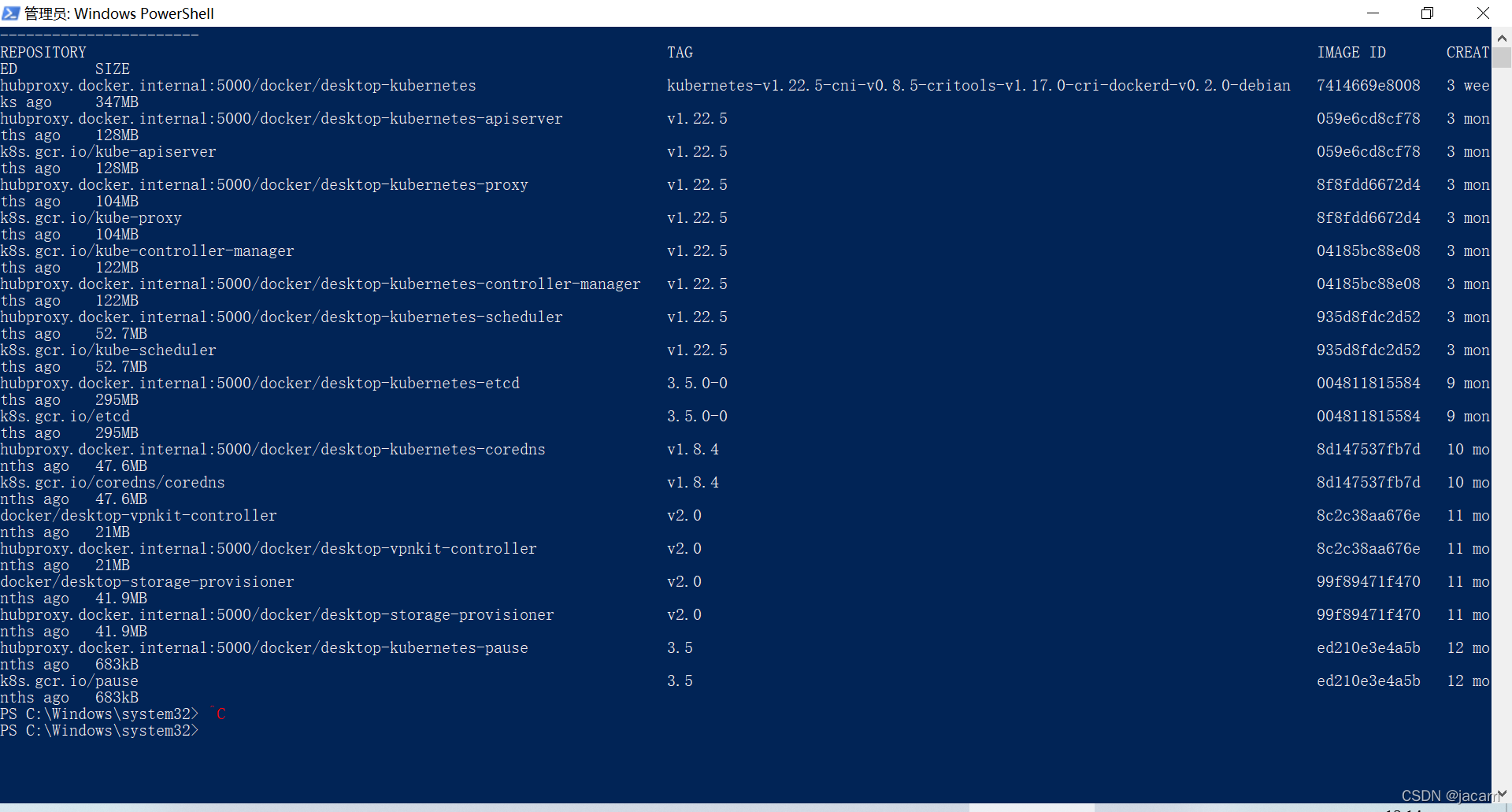 无奈 PowerShell 没有watch命令,只能写个死循环 不断执行docker images。
