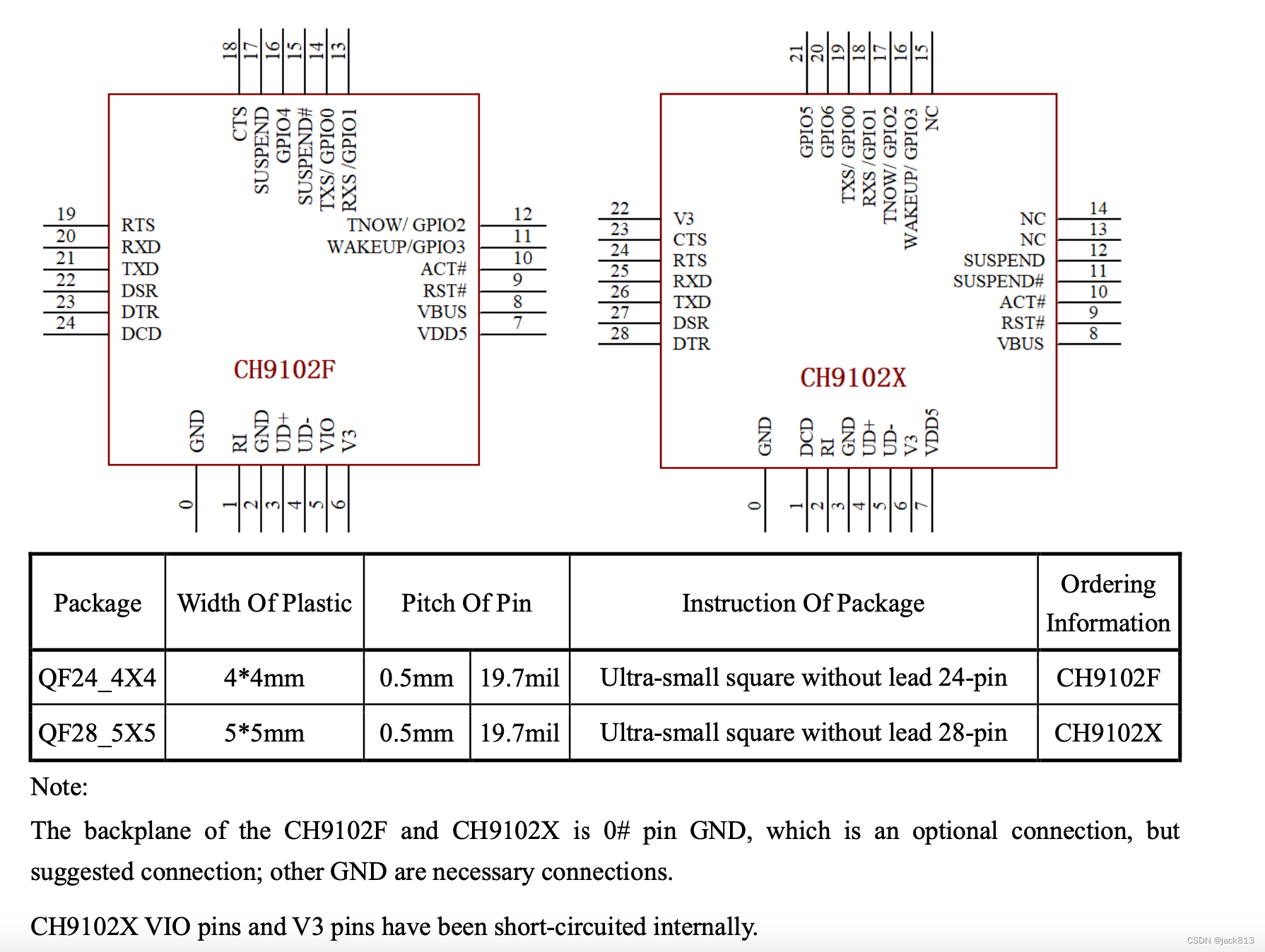 CH9102系列芯片包含CH9102F和CH9102X两个型号,在保证所需功能可用的情况下,可以选择尺寸更小的CH9102F。