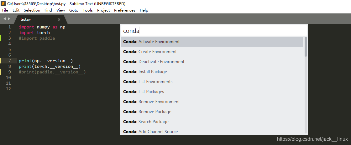 3 Preferences ——> Package Settings ——> Conda ——> Settings-User
