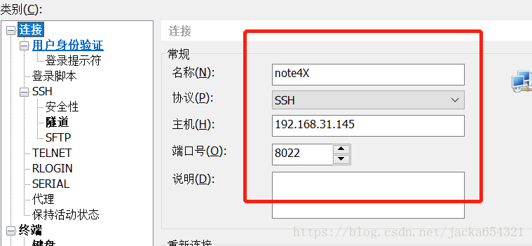 8、在Xshell上验证,名称随意,手机局域网IP,端口8022,