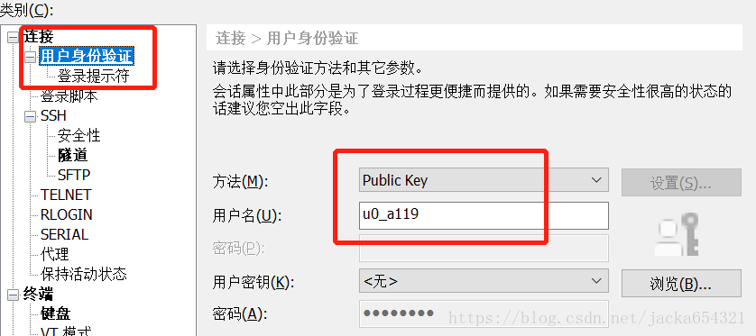 方法:public_key,用户名:xxx 要填自己的,在termux上,输入whoami,即可查询到;