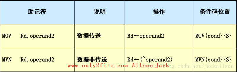 数据处理指令只能对寄存器的内容进行操作,而不能对内存中的数据进行操作。所有ARM数据传送或算术逻辑运算指令均可选择使用S后缀,以使指令影响CPSR中的标志。