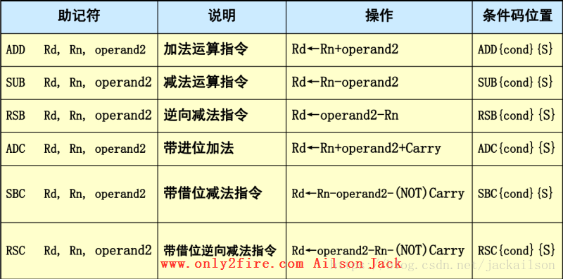 注:当后缀有S时,这些指令根据结果更新标志N、Z、C、V。