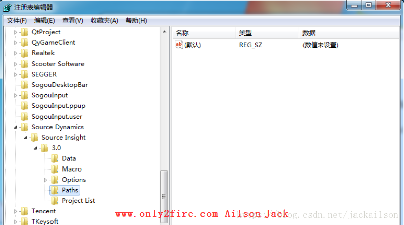 这是由于source insight的默认工程目录含有中文路径,导致打不开软件,此时我们可以通过修改注册表来重新指定默认的工程路径来解决这个问题。具体方法如下: