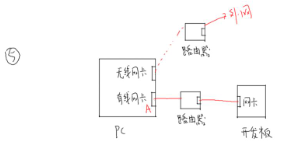 ① 让开发板通过WIFI网卡连接到手机发出的热点WiFi,再让PC机连接到手机发出的热点WiFi,不管虚拟机,实现开发板和PC机可以互ping