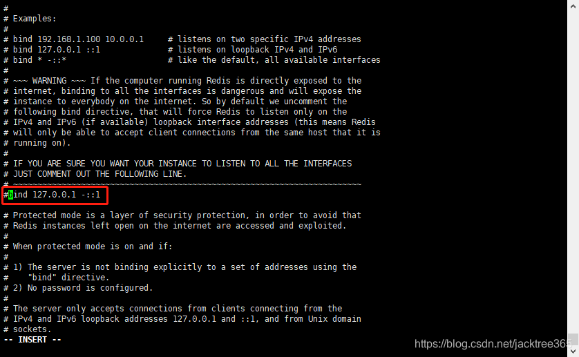 编辑 redis.conf配置文件,注释掉bind 127.0.0.1,开启redis远程访问服务(把 redis.conf配置文件中的 bind 127.0.0.1 这一行给注释掉,这里的bind指的是只有指定的网段才能远程访问这个redis,注释掉后,就没有这个限制了。)