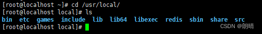 cd 到/usr/local目录下输入ls命令可以查询到当前目录已经多了一个redis子目录,同时/root目录下已经没有redis-5.0.7文件夹
